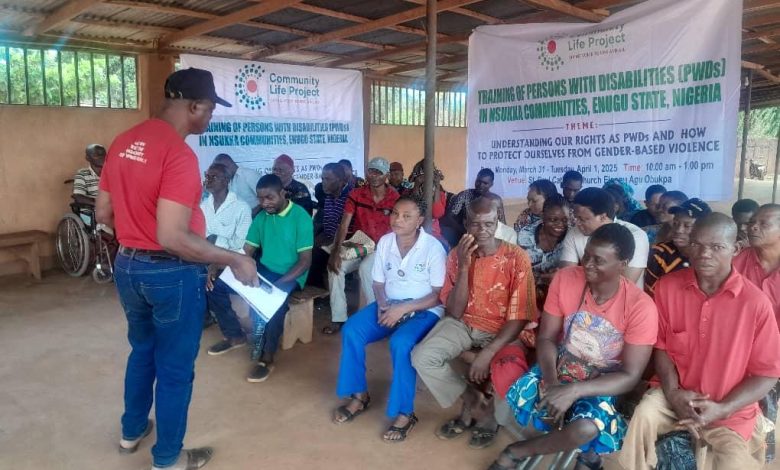 A group, Community Life Project (CLP), a non-governmental organization has sensitised People with Disabilities (PWDs) in Nsukka Local Government Area of Enugu State on their rights and privileges especially as it concerns Gender-Based Violence (GBV).